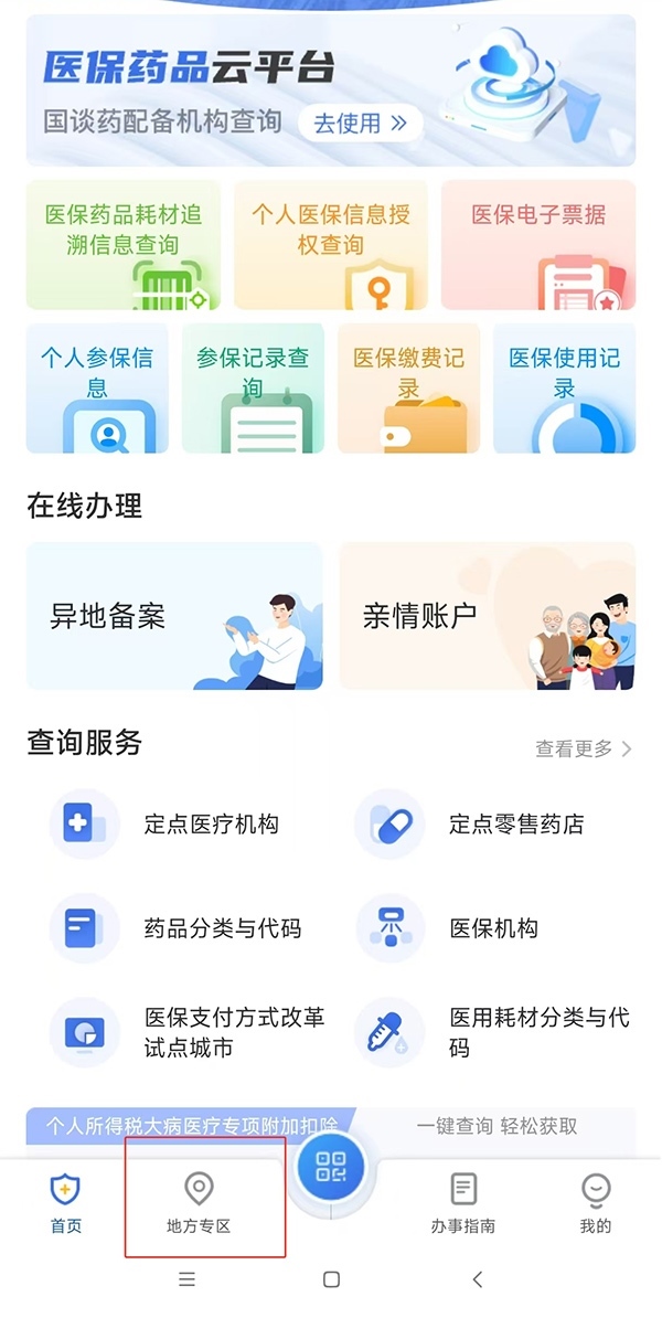 第一步:以北京為例,打開(kāi)“國(guó)家醫(yī)保服務(wù)平臺(tái)”App,點(diǎn)擊進(jìn)入下方“地方專(zhuān)區(qū)”,選擇“北京市”。