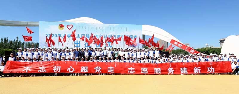 7月29日,2020年內(nèi)蒙古大學(xué)生志愿服務(wù)西部計(jì)劃志愿者出征儀式在呼和浩特舉行,來(lái)自區(qū)內(nèi)外高校的部分西部計(jì)劃志愿者代表和旗縣項(xiàng)目辦負(fù)責(zé)人參加。