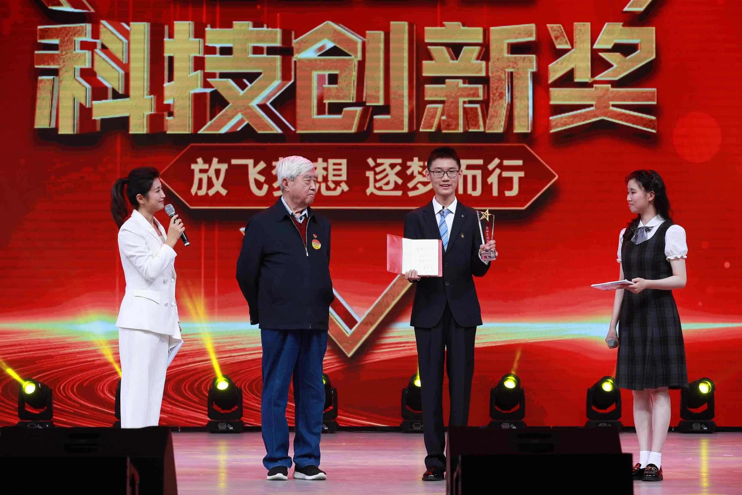 6月7日,北京人大附中考點外,送考同學為考生拉橫幅加油。中新社記者富田攝