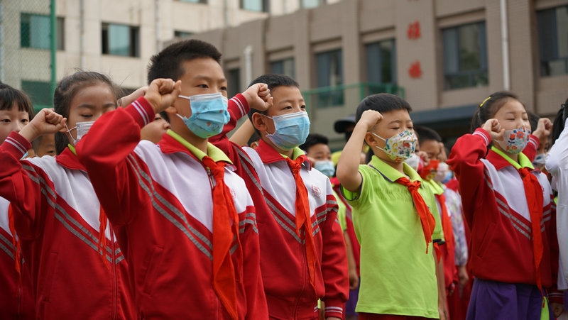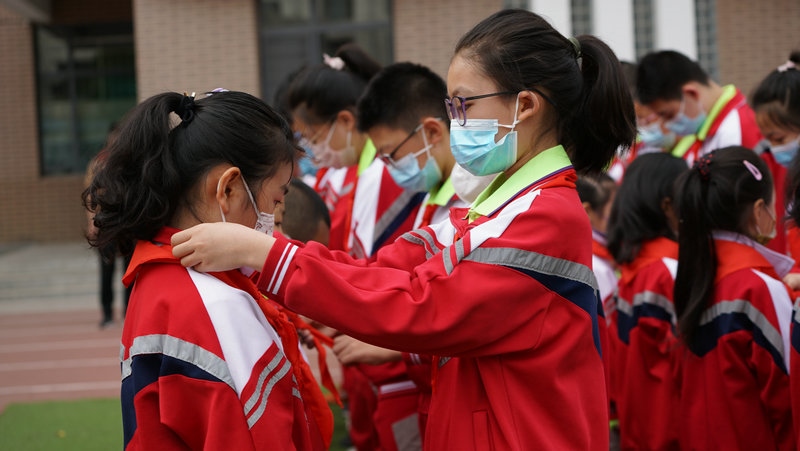 新城區(qū)北垣小學(xué)舉行一年級新生分批入隊(duì)儀式。新隊(duì)員們戴上紅領(lǐng)巾,走在陽光下,熠熠生輝。學(xué)校利用好“六一”這個(gè)重要時(shí)間節(jié)點(diǎn),開展入隊(duì)儀式、“紅領(lǐng)巾獎(jiǎng)?wù)隆鳖C章儀式等,用好儀式教育,構(gòu)建階梯式成長激勵(lì)體系,不斷增強(qiáng)少先隊(duì)員的光榮感。