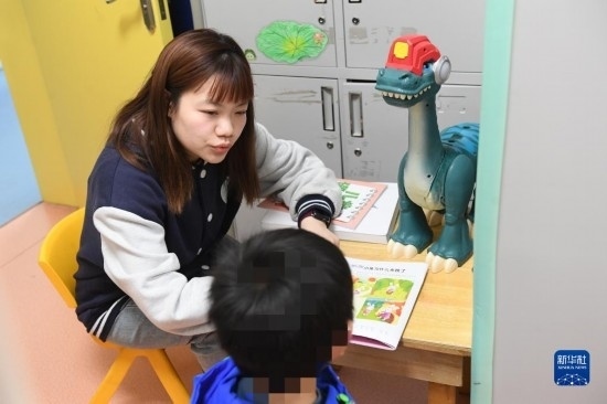 3月29日,一名老師在給自閉癥兒童做一對(duì)一訓(xùn)練。