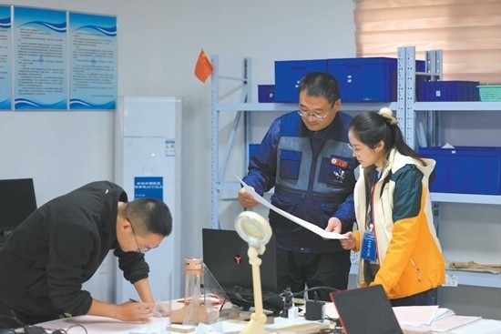 吉林大學(xué)考古學(xué)院副院長(zhǎng)方啟在基地實(shí)驗(yàn)室指導(dǎo)學(xué)生。圖片由受訪者提供