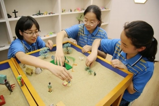 2023年5月30日,在湖北省十堰市鄖陽區(qū)一中,高三學生在學校的沙盤室內(nèi)通過擺放物件釋放壓力。通訊員 曹忠宏 宋紅梅 攝