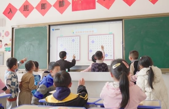 2023年12月20日,在云南省昭通市魯?shù)榭h卯家灣小學,學生們通過智能雙師課堂,進行《注意力專項訓練》課程的大屏互動。通訊員 鄭敬亭 攝