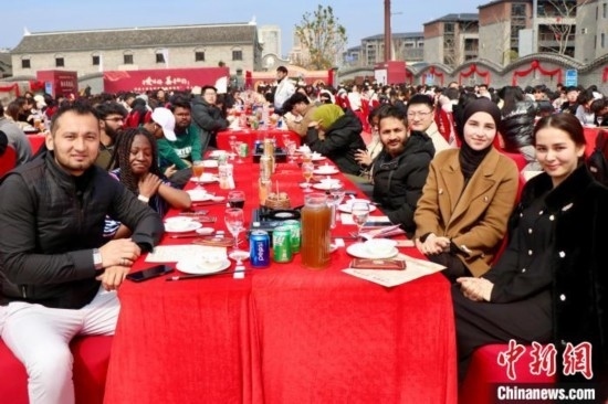 外國留學(xué)生體驗“路橋區(qū)首屆‘辣呵呵’千人宴”。阮雅妮 攝