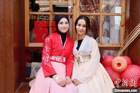 外國留學(xué)生體驗漢服。阮雅妮 攝