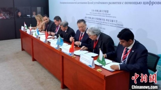 活動(dòng)現(xiàn)場,西安交通大學(xué)、哈薩克斯坦國立大學(xué)、伊朗科技大學(xué)、塔什干信息技術(shù)大學(xué)、吉爾吉斯國際大學(xué)、巴基斯坦國立科技大學(xué)、塔吉克斯坦國立大學(xué)共同簽署“絲綢之路大學(xué)聯(lián)盟”內(nèi)上海合作組織成員國《高等教育合作協(xié)議》。在該合作協(xié)議框架下,各方達(dá)成首個(gè)學(xué)分互認(rèn)項(xiàng)目的共識(shí),即共同建設(shè)絲綢之路大學(xué)聯(lián)盟“可持續(xù)發(fā)展目標(biāo)實(shí)現(xiàn)路徑在線課程”。