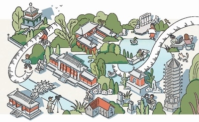 周 玨繪周玨畢業(yè)于北京大學(xué)考古文博學(xué)院,是一名職業(yè)插畫師,曾經(jīng)參加過導(dǎo)師張劍葳副教授組織的燕園文物數(shù)字化工作坊。她用畫作描述了師生參與燕南園歷史地段景觀保護(hù)與展示項(xiàng)目的情景?!把鄨@曾是我學(xué)習(xí)生活過的地方,又是值得研究與保護(hù)的文化遺產(chǎn)。燕園不僅以塔、湖聞名,還有西校門、辦公樓、紅五樓、校景亭、花神廟和燕南園?!?/p>