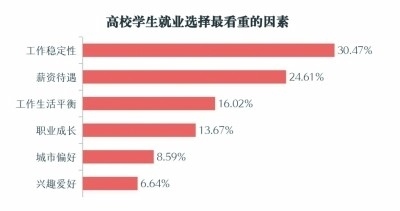 對(duì)我國(guó)東、中、西部地區(qū)7個(gè)省區(qū)市的14所本科院校、4所??圃盒#采w研究生、本科生、專科生三類群體,隨機(jī)抽樣的1829份調(diào)查問卷顯示,除工作穩(wěn)定性、薪資待遇外,工作生活平衡、職業(yè)成長(zhǎng)、所在城市、興趣愛好等,也是高校學(xué)生就業(yè)選擇時(shí)看重的因素。