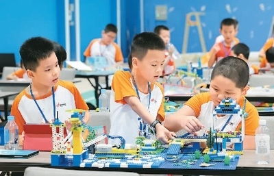 選手在參加小學(xué)組創(chuàng)意賽。