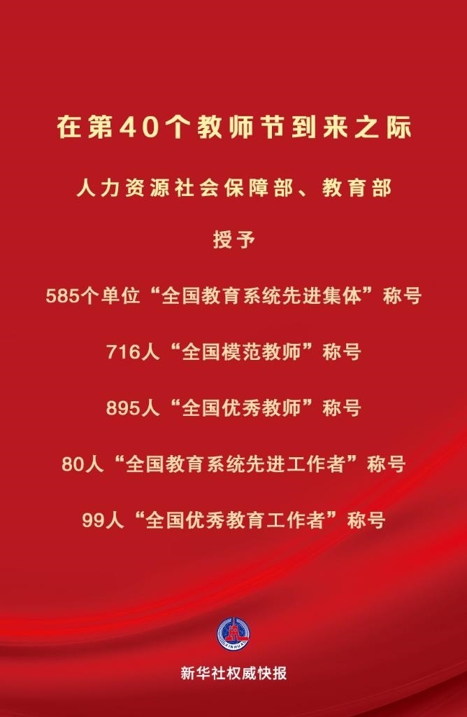 慶祝第40個(gè)教師節(jié) 全國(guó)585個(gè)單位、1790人受表彰