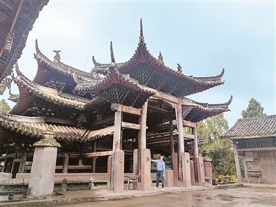 “古貓陪你去看博物館”創(chuàng)始人湯詩(shī)偉在四川省安岳縣考察全國(guó)重點(diǎn)文物保護(hù)單位木門寺。