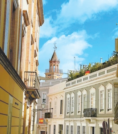 市中心的老城區(qū)商業(yè)街,現(xiàn)代與歷史交融得相得益彰——在這里,可以買到塞維利亞傳統(tǒng)民族舞蹈弗拉門戈的經(jīng)典裝扮,也找得到當(dāng)代潮流設(shè)計(jì)師的前衛(wèi)設(shè)計(jì);可以步入有百年歷史的手工藝品老店,也可以打卡開業(yè)不久透著青春潮流氣息的文創(chuàng)快閃店。我從路邊買一支巧克力橙皮口味的冰激凌,邊吃邊逛,覽不盡有趣街景。