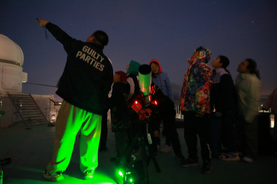 夜幕降臨,參加活動(dòng)的學(xué)員家庭走進(jìn)悟空天文臺(tái),近距離接觸“內(nèi)蒙古天眼”——自治區(qū)最大的單口徑光學(xué)望遠(yuǎn)鏡,學(xué)習(xí)望遠(yuǎn)鏡構(gòu)造與應(yīng)用原理。在老師的指導(dǎo)下,通過(guò)望遠(yuǎn)鏡觀測(cè)春季星空,辨識(shí)星座,領(lǐng)略土星光環(huán)、月球隕石坑等天象奇觀?;顒?dòng)還特別設(shè)置了“天文趣味知識(shí)大挑戰(zhàn)”,以互動(dòng)問(wèn)答鞏固學(xué)習(xí)成果,孩子們爭(zhēng)相搶答,展現(xiàn)出對(duì)宇宙的無(wú)限好奇。
