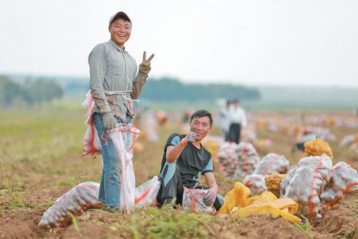 近日,在烏蘭察布市察右后旗白音察干鎮(zhèn)建設村馬鈴薯種植基地,見到該村連營農(nóng)業(yè)機械合作社負責人郝軍時,他正忙得不亦樂乎。據(jù)了解,今年馬鈴薯銷售價格可觀,他們的合作社迎來了又一個豐收年。