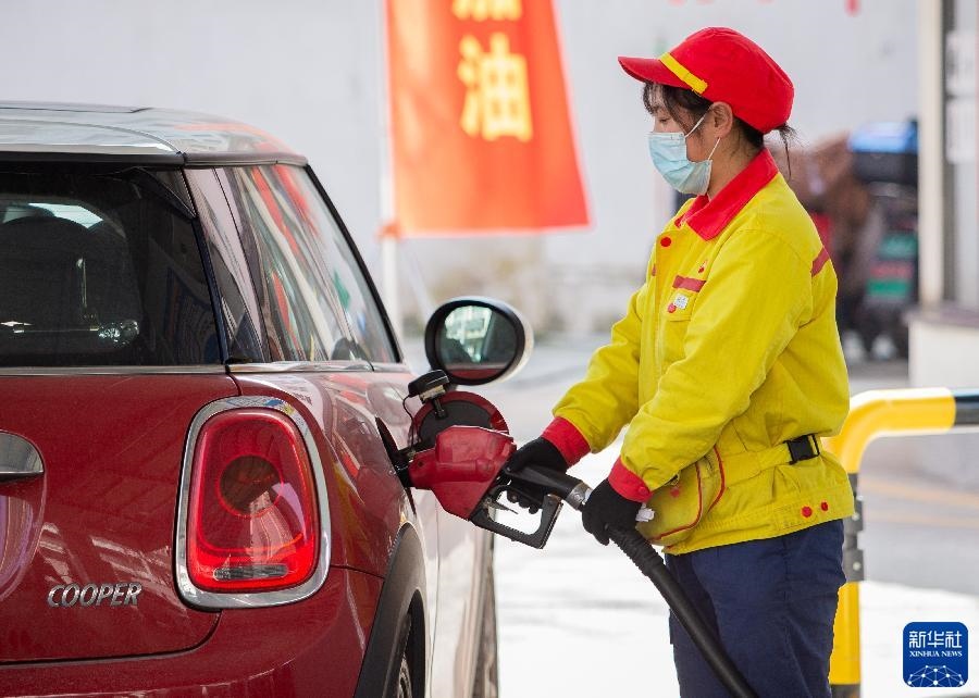 3月3日,江蘇南京一加油站的工作人員給車輛加油。新華社發(fā)( 蘇陽(yáng) 攝)