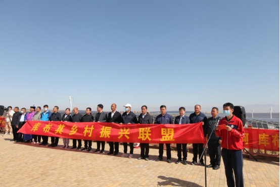 第18屆庫布其植樹節(jié)同步翻開了“鞏固脫貧攻堅成果、推動鄉(xiāng)村振興發(fā)展”的新篇章。在鄂爾多斯、杭錦旗各級黨委政府的領(lǐng)導下,億利集團攜手鄂爾多斯市50多家中小企業(yè)、杭錦旗工商聯(lián)、國家稅務(wù)總局杭錦旗稅務(wù)局和相關(guān)的企業(yè)、公益機構(gòu)和社會愛心人士,聯(lián)合庫布其沙區(qū)的杭錦淖爾村、刀圖嘎查、沙日召嘎查、圖古日格嘎查、白音補拉嘎查、查干布拉嘎查、格更召嘎查,成立庫布其鄉(xiāng)村振興聯(lián)盟(以下簡稱“聯(lián)盟”),活動現(xiàn)場宣讀了《庫布其鄉(xiāng)村振興聯(lián)盟宣言》。聯(lián)盟將致力于重點推進分布式光伏發(fā)電項目建設(shè),打造黃河文化、沙漠文化、民俗文化相結(jié)合的文化旅游村,進一步發(fā)掘古如歌文化,建設(shè)好沙漠綠色生態(tài)公園,高質(zhì)量推動板下現(xiàn)代農(nóng)牧產(chǎn)業(yè)發(fā)展,同時依托億利在庫布其打造起來的一二三產(chǎn)業(yè)融合發(fā)展的產(chǎn)業(yè)平臺,切實推動庫布其周邊村嘎查鄉(xiāng)村振興。國家稅務(wù)總局杭錦旗稅務(wù)局在活動現(xiàn)場宣傳了稅務(wù)支持服務(wù)營商環(huán)境改善、減稅降費、降碳擴綠等惠民惠企政策,營造“稅企村”共同助力黃河流域生態(tài)保護與高質(zhì)量發(fā)展、推動鄉(xiāng)村振興的新格局。