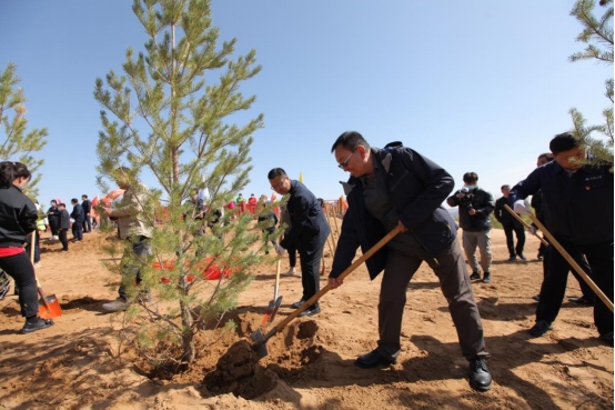 北疆新聞網(wǎng)、北疆新聞APP、北疆云消息(張博)黃河中上游沿岸,谷雨時節(jié),在庫布其沙漠和騰格里沙漠腹地,植樹擴綠正隨著光伏治沙降碳而延伸,描繪著藍綠交織、水沙和諧、鄉(xiāng)村振興的工筆畫。4月22日是第53個世界地球日,也是第18屆庫布其植樹節(jié),蒙西基地庫布其200萬千瓦光伏治沙項目現(xiàn)場、甘肅武威50萬千瓦光伏治沙項目現(xiàn)場同步舉行大型植樹紀念活動,主題為“光伏治沙護河,庫布其降碳擴綠與鄉(xiāng)村振興”,正式啟動庫布其“十四五”1億棵碳匯林工程第二期種植。億利集團董事長王文彪表示:“‘十四五’期間,我們將在黃河流域的庫布其沙漠、烏蘭布和沙漠、騰格里沙漠的億利治沙區(qū)域建設(shè)上百公里治沙護河碳匯林帶,2021年已如期完成2000萬棵種植任務(wù),2022年將繼續(xù)通過‘政策+產(chǎn)業(yè)+公益’的模式,實施光伏板下種植和沙漠生態(tài)種植,確保完成2000萬棵種植任務(wù)。億利庫布其治沙科技和經(jīng)驗?zāi)J揭沧呱狭宋鞑啬乔吆吆0蔚貐^(qū),成功種活了近40萬株鄉(xiāng)土樹種,我們將加快推動那曲城鎮(zhèn)植樹關(guān)鍵技術(shù)研發(fā)與綠化模式示范項目成果的規(guī)?;茝V?!被顒蝇F(xiàn)場全面啟動了國家在庫布其沙漠規(guī)劃的退化林修復(fù)工程、蒙西基地2GW光伏治沙和甘肅武威500兆瓦光伏治沙項目板下生態(tài)種植工程、杭錦旗林草局和團委保護母親河工程、螞蟻森林、大鉦資本庫布其沙漠雙碳公益林、鄂爾多斯中小企業(yè)庫布其公益林、杭錦旗工商聯(lián)林、杭錦旗稅務(wù)碳匯林等多個生態(tài)植樹項目。