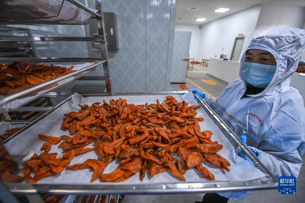 11月23日,在浙江省建德市更樓街道橋嶺村共富工坊的工作人員在碼放剛剛從烘箱里拿出來(lái)的地瓜干。新華社記者 徐昱 攝