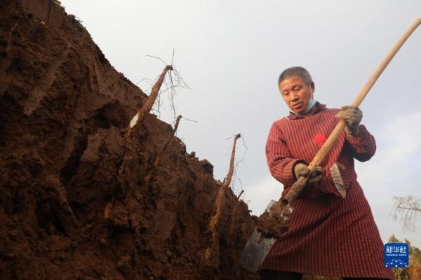 12月12日,溫縣番田鎮(zhèn)余村農(nóng)民在田間采挖鐵棍山藥。新華社發(fā)(徐宏星 攝)