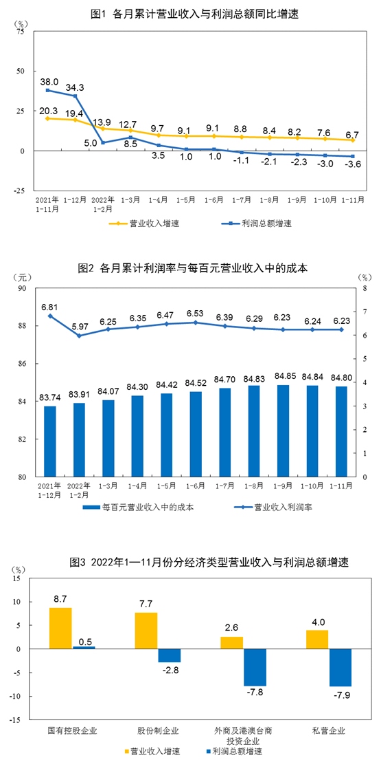 國家統(tǒng)計局工業(yè)司高級統(tǒng)計師朱虹表示,11月份,受疫情反彈和需求不足等因素影響,工業(yè)生產有所放緩,企業(yè)經營壓力加大,但利潤結構持續(xù)改善。具體來看,1—11月份工業(yè)企業(yè)效益狀況主要呈現以下特點: