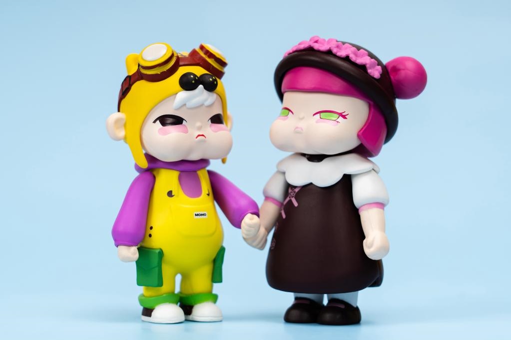 圖為惠山泥人新人物形象——“MOMO”(左)和“NANI”?;萆侥嗳藦S供圖