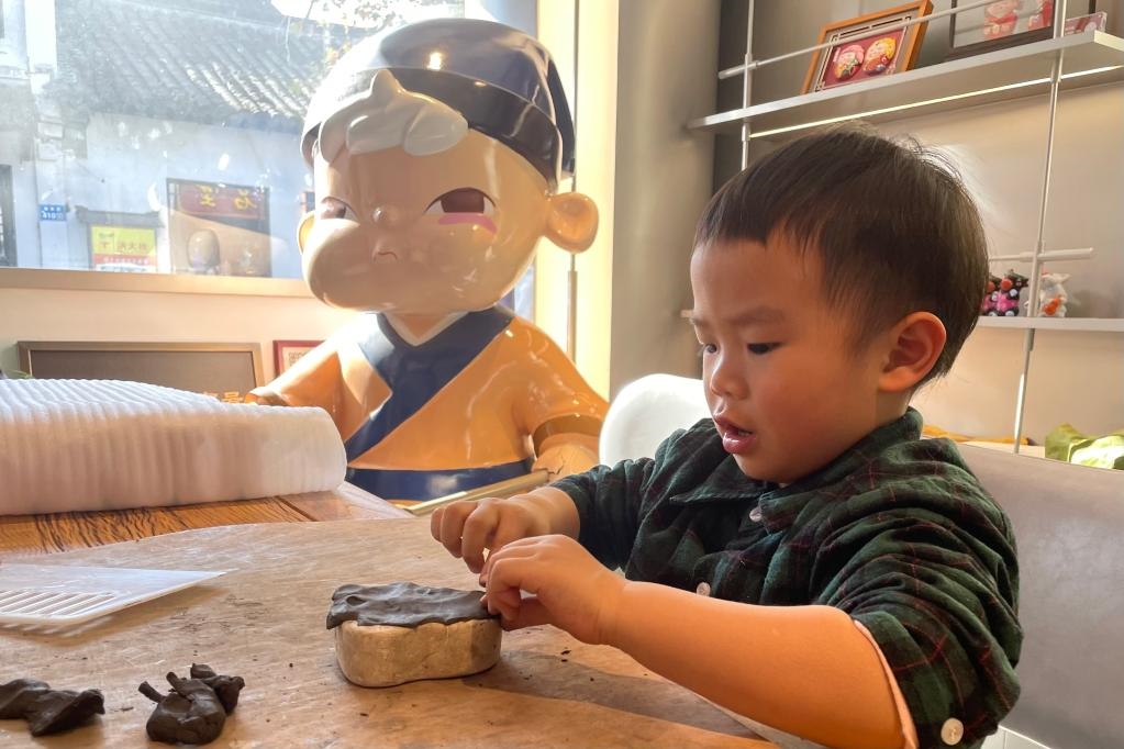 惠山泥人廠還將泥人文化與咖啡文化融合,在無(wú)錫一些景區(qū)開(kāi)設(shè)泥人咖啡館。游客進(jìn)入咖啡館,可一邊品嘗咖啡,一邊了解非遺文化,還能捏一個(gè)屬于自己的泥人。