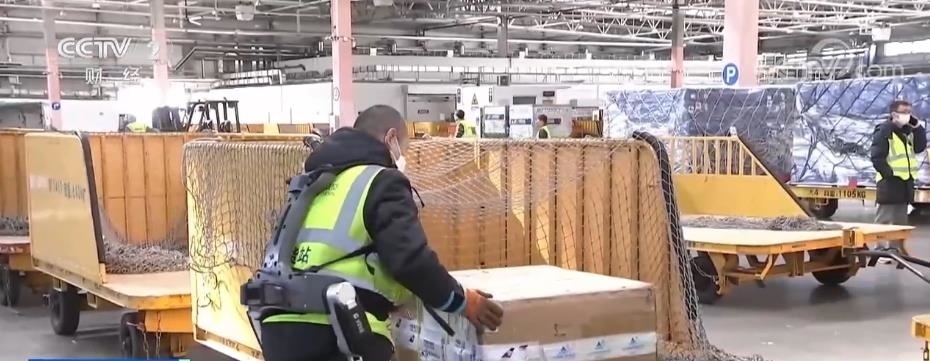 春節(jié)前后貨站的來(lái)貨量大增,貨物品種多樣,包裝規(guī)格也不盡相同,很多都需要人工處理。在大興機(jī)場(chǎng)的國(guó)內(nèi)貨運(yùn)站里記者看到,負(fù)責(zé)搬運(yùn)的工作人員身穿外骨骼機(jī)器人,將很大的貨運(yùn)箱輕松搬起。工作人員相春江告訴記者,他們貨站前兩年就引進(jìn)了外骨骼機(jī)器人,但是之前貨量小,使用頻率并不高,真正用起來(lái)還是在最近。