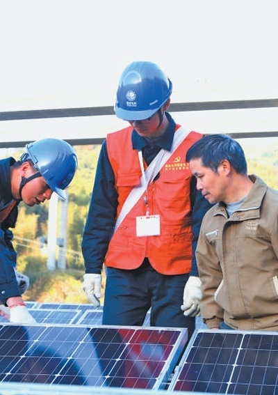 國網(wǎng)福建省電力公司員工幫助用戶檢查光伏發(fā)電板。鄭 極攝