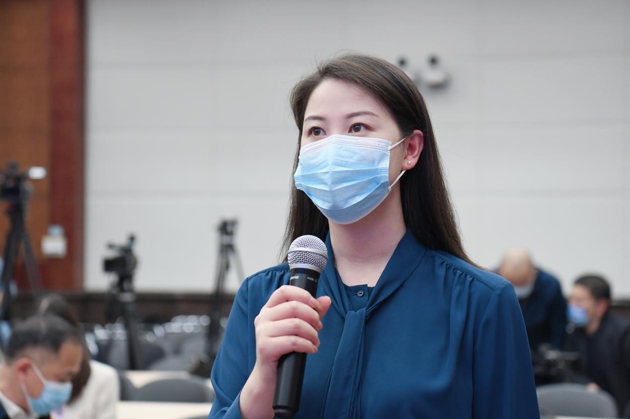 人民網(wǎng)記者任妍在2023年一季度財(cái)政收支情況新聞發(fā)布會(huì)上提問。中國財(cái)經(jīng)報(bào)余波 攝