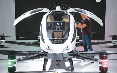 圖為廣交會新設置的新能源及智能網(wǎng)聯(lián)汽車展區(qū)內,采購商在了解正在展示的飛行器產品。新華社記者 鄧 華攝