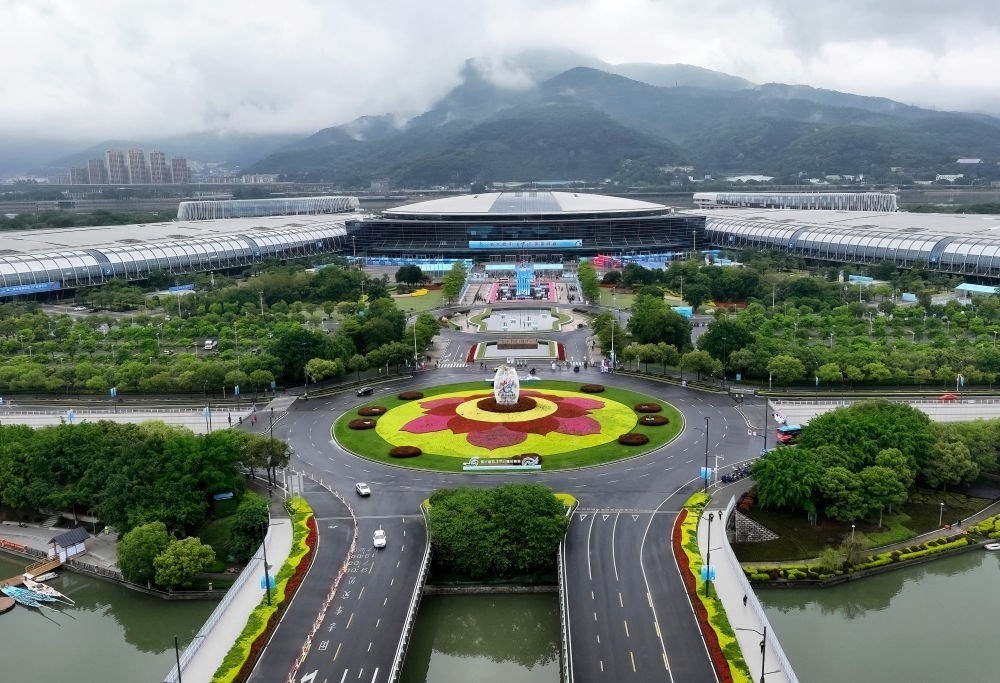 這是4月26日拍攝的第六屆數(shù)字中國建設(shè)峰會主辦地福州海峽國際會展中心外景(無人機(jī)照片)。新華社記者 魏培全 攝