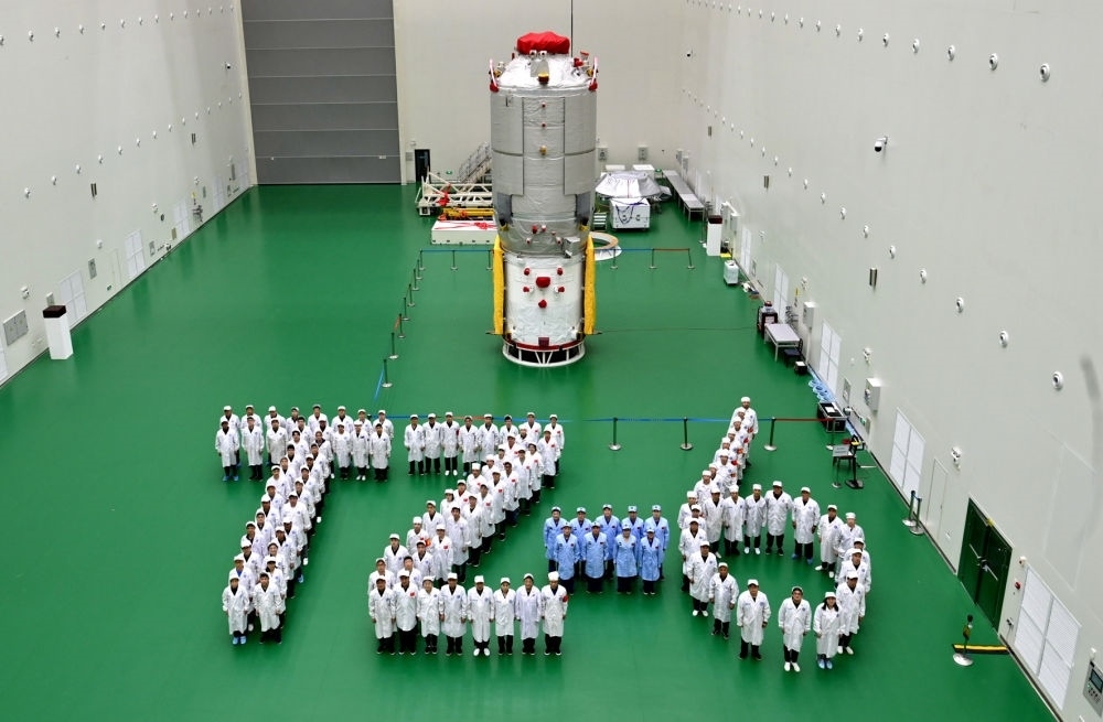 天舟六號貨運飛船八院試驗隊和天舟六號推進(jìn)艙合影。(中國航天科技集團(tuán)八院供圖)