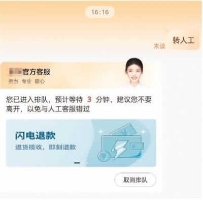 現(xiàn)實(shí)中,智能客服的出現(xiàn)的確提供了諸多便利,但當(dāng)智能客服的標(biāo)準(zhǔn)化應(yīng)答無(wú)法解決遇到的具體問(wèn)題時(shí),更多用戶(hù)便轉(zhuǎn)向人工客服。然而,人工客服的接通率較低。有網(wǎng)友反映,即便通過(guò)排隊(duì)接入人工客服,有時(shí)為了提交信息退出聊天窗口后,又需重新排隊(duì)進(jìn)入,而此時(shí),人工客服已換人,之前提出的問(wèn)題也需要重復(fù)表述。