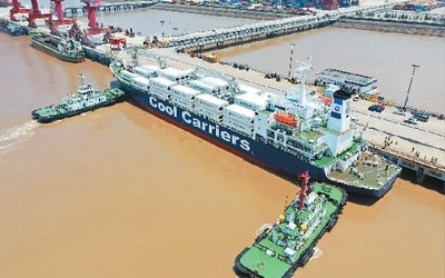 去年以來,浙江省玉環(huán)市持續(xù)加強(qiáng)對(duì)港口企業(yè)的引導(dǎo)力度,拓展大麥嶼港與東南亞國(guó)家、RCEP國(guó)家的合作。圖為一艘滿載6245噸新季獼猴桃的新西蘭貨輪停泊在大麥嶼港集裝箱碼頭,該航線是大麥嶼港于去年成功開通的RCEP國(guó)家水果進(jìn)口航線,實(shí)現(xiàn)了入境水果業(yè)務(wù)零的突破。段俊利攝(人民視覺)