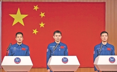 航天員故事 4月24日,神舟十八號(hào)載人飛行任務(wù)航天員葉光富(中)、......