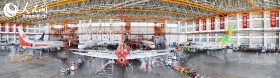 機庫內(nèi)等待維修的飛機。 人民網(wǎng)記者 孟凡盛攝