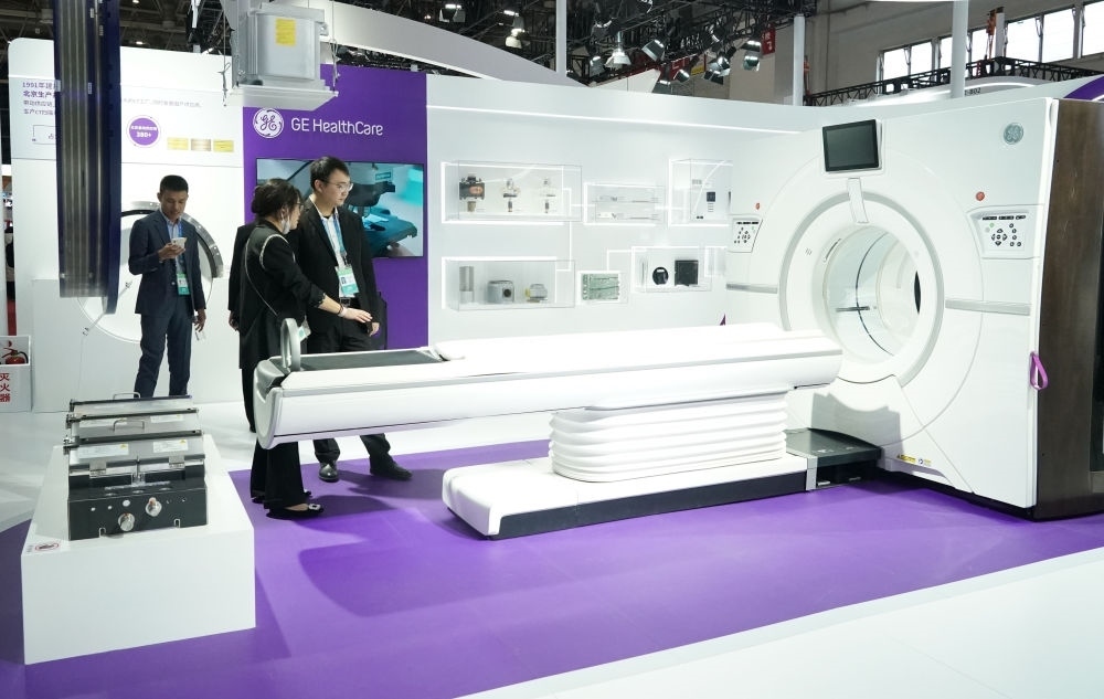 這是在首屆中國國際供應鏈促進博覽會健康生活鏈展區(qū)拍攝的GE醫(yī)療展位(2023年11月29日攝)。新華社記者 任超 攝
