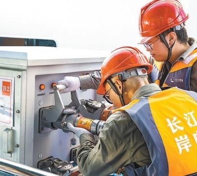 三峽壩區(qū),豐枯水期水位相差幾十米,船若泊在江心錨地,與岸上供電設(shè)施有距離?!盀榻鉀Q‘高低’和‘遠近’問題,我們創(chuàng)新研發(fā)了10千伏電纜收放技術(shù)和充電躉船,能隨水位變化自動收放纜線,或行駛到江心為船舶供電?!崩钆d衡介紹,公司還建成岸電云網(wǎng)服務(wù)平臺,為船舶提供統(tǒng)一結(jié)算、移動支付等便捷服務(wù)。