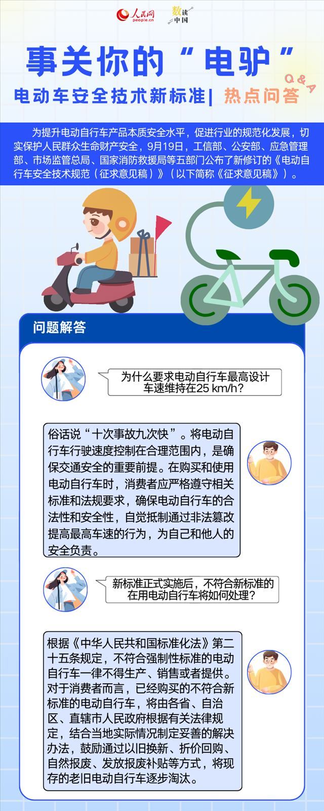 人民網(wǎng)北京9月19日電 (申佳平、方經(jīng)綸)為提升電動自行車產(chǎn)品本質(zhì)安全水平,促進行業(yè)的規(guī)范化發(fā)展,切實保護人民群眾生命財產(chǎn)安全,9月19日,工信部、公安部、應(yīng)急管理部、市場監(jiān)管總局、國家消防救援局等五部門公布了新修訂的《電動自行車安全技術(shù)規(guī)范(征求意見稿)》(以下簡稱《征求意見稿》)。