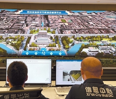 客流量浮動、監(jiān)測點位數(shù)據(jù)變化、AI風險預警……在西安城墻管委會信息中心,一個個詳細的實時數(shù)據(jù)每天都在大屏幕上滾動呈現(xiàn)。輕擊鼠標,虛實結合的數(shù)字“城墻”便出現(xiàn)在人們眼前,從外部的磚瓦彩繪到內(nèi)部的建筑結構,透過“數(shù)字方艙”超大屏端頁面,西安城墻的各種信息映入眼簾。這座“虛擬城墻”便是西安城墻數(shù)字方艙綜合管理平臺的一部分。近年來,西安城墻運用數(shù)字孿生、人工智能、大數(shù)據(jù)、物聯(lián)網(wǎng)、地球物理等前沿技術,與高校、科研院所和骨干企業(yè)共建,打造了一套集文物保護、文旅運營、應急管理、防汛指揮等功能于一體的“文化遺產(chǎn)數(shù)字化保護利用綜合解決方案”,實現(xiàn)了關鍵技術突破及文保文旅數(shù)據(jù)的融合共享。