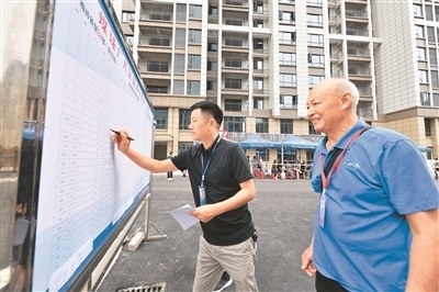 近年來(lái),湖北省襄陽(yáng)市??悼h持續(xù)改善城市人居環(huán)境、提升城市功能與品位,讓群眾住有所居、安居宜居的夢(mèng)想不斷成為美好現(xiàn)實(shí)。圖為??悼h新型城鎮(zhèn)化項(xiàng)目國(guó)投·梅嶺新居小區(qū)開(kāi)展分房選房工作時(shí),工作人員在填寫(xiě)房源分配信息。楊 韜攝(人民視覺(jué))