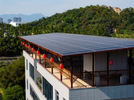 “陽(yáng)明樓”是興中村通過租賃形式引入的屋頂光伏產(chǎn)品,農(nóng)戶通過出租閑置屋頂給光伏電站項(xiàng)目獲得租金收益,目前該村已有十余戶安裝。為最大化發(fā)電效率,產(chǎn)品采用5°人字坡設(shè)計(jì),確保光伏板全年可接收足夠光照,實(shí)現(xiàn)收益最大化。按屋頂安裝105塊光伏組件計(jì)算,農(nóng)戶在合作期間累計(jì)可獲得屋頂綜合收益近8萬(wàn)元。產(chǎn)品不僅隔熱防雨,其設(shè)計(jì)結(jié)合中式建筑風(fēng)格,也成為“綠化”鄉(xiāng)村的一道風(fēng)景。