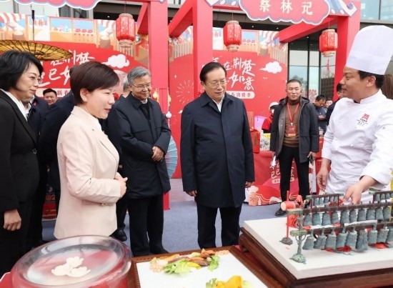 啟動儀式后,王忠林、李殿勛、盛秋平、范昀等領(lǐng)導和嘉賓來到武商夢時代新春消費市集、國潮好物市集,察看手機、平板、智能穿戴數(shù)碼產(chǎn)品展示,參觀非遺孝感雕花剪紙、恩施西蘭卡普,老字號德華樓、揚子江、百布堂、洪山菜薹以及楚菜、楚茶、楚酒等展區(qū),與商戶交流,了解消費補貼政策實施、產(chǎn)品銷售情況,并祝愿商戶們新春快樂、生意興隆。