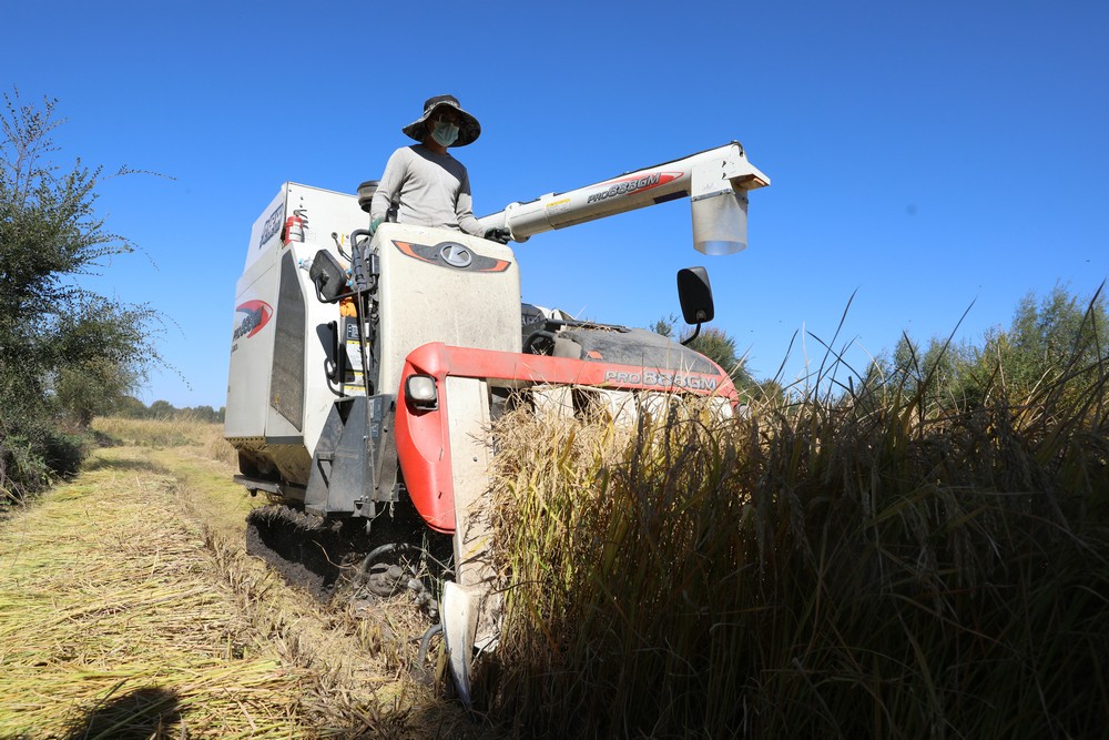 金秋時(shí)節(jié),內(nèi)蒙古興安盟烏蘭浩特市義勒力特鎮(zhèn)的廣袤稻田化作金色海洋。沉甸甸的稻穗在陽光下泛著金色的光芒,收割機(jī)穿梭于田野間,將豐收的喜悅裝進(jìn)糧倉(cāng)。