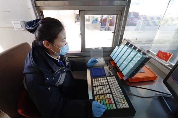“通行卡是司機與收費站工作人員直接接觸的物品,在達到崗?fù)で埃呀?jīng)過數(shù)次消毒。最終遞給司機時,還要再消毒一次,保障防疫安全?!? 首發(fā)集團京開分公司西紅門收費所副所長張子健一邊說著,一邊引領(lǐng)記者走過收費站下長長的安全通道。