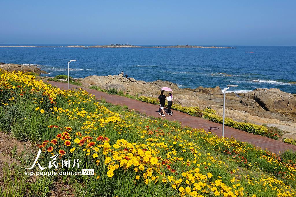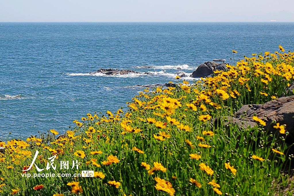 近日,青島海岸邊的金雞菊盛放成片片黃色花海,與蔚藍的大海相映生輝,美不勝收。韓波攝(人民圖片網(wǎng))