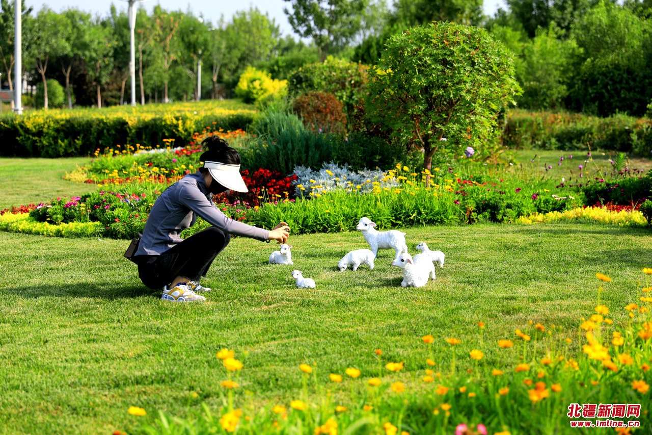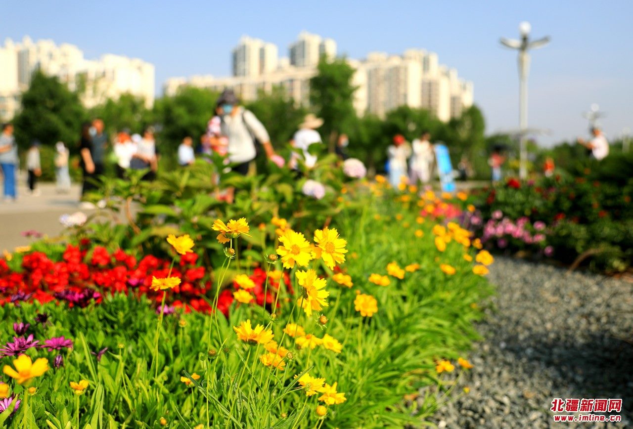 8月4日,呼和浩特市草原絲綢之路文化公園,一處280平方米的花境吸引眾多游人前來參觀打卡。
