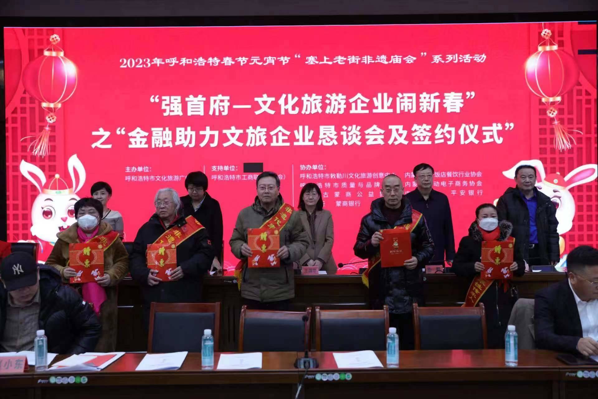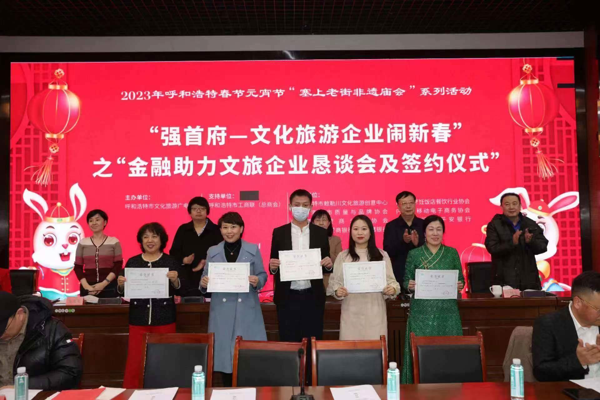 2月4日,呼和浩特市文化旅游廣電局與呼市工商聯(lián)(總商會(huì))舉辦“強(qiáng)首府—文化旅游企業(yè)鬧新春”之“金融助力文旅企業(yè)懇談會(huì)及簽約儀式”,共同為首府提振市場(chǎng)信心、促進(jìn)文化旅游產(chǎn)業(yè)高質(zhì)量發(fā)展、促進(jìn)首府“六大產(chǎn)業(yè)集群”作出貢獻(xiàn)。