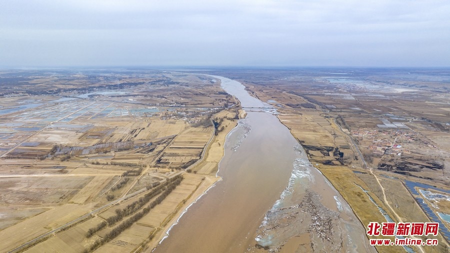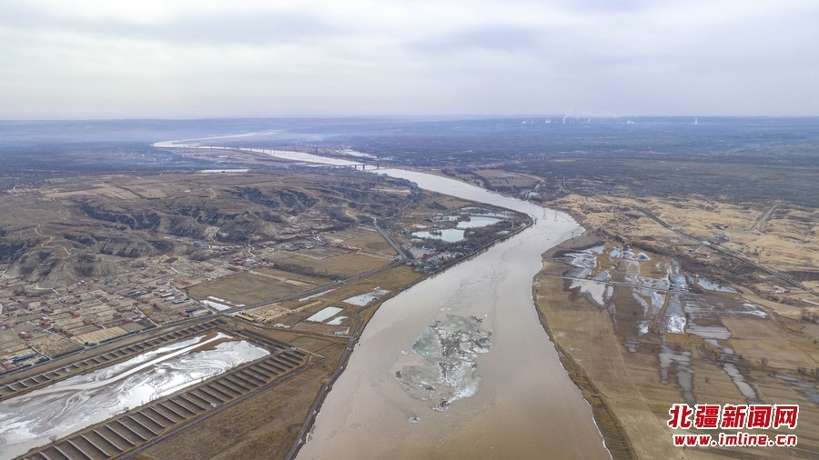 3月11日,空中俯瞰黃河呼和浩特托克托縣段。近日,隨著北方氣溫逐漸回升,黃河托克托縣段冰河加速開河。 樂炎攝影報道